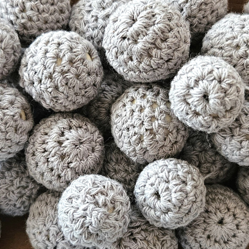 Heklede Perleballer- 10 stk Grå