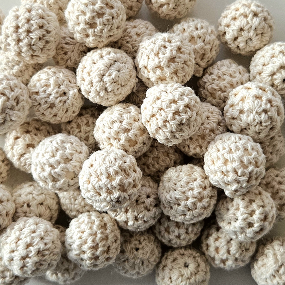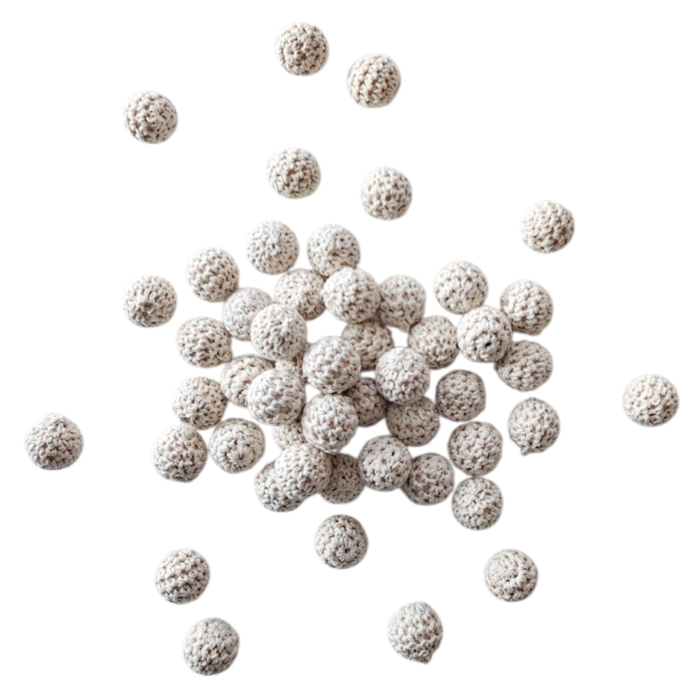 10 stk Heklede runde "Perleballer" i Bomull med hull