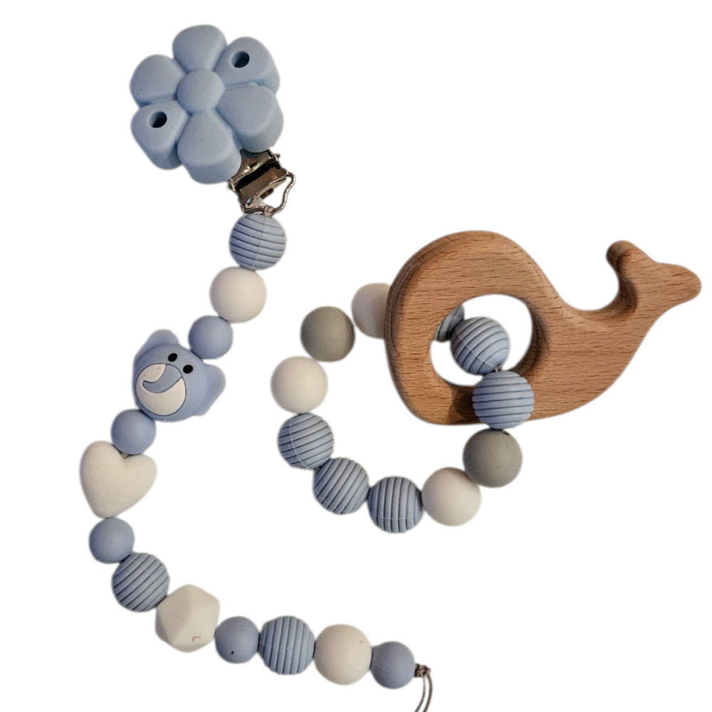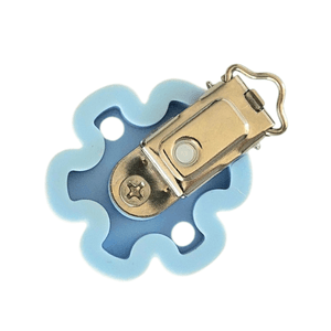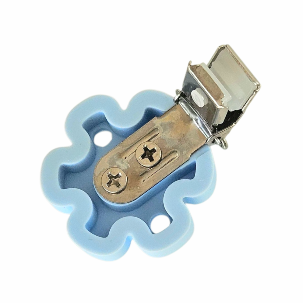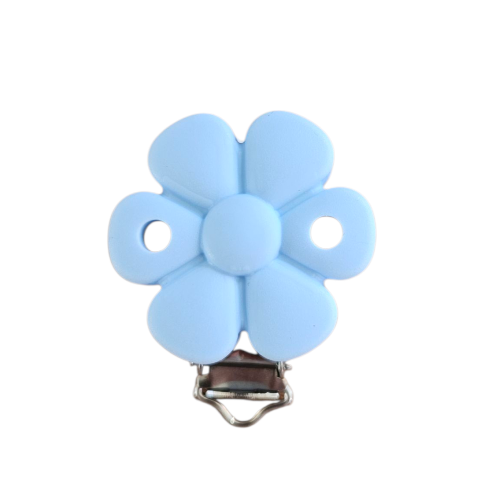 Klips med Lyseblå Blomst i silikon til bruk når man skal lage f eks smokkelenker, vognlenker ol.