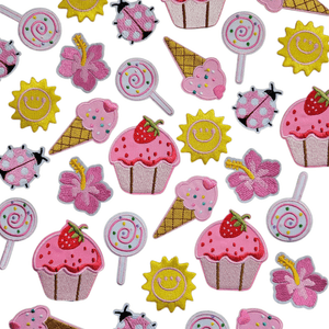 Søt "Jordbær Kroneis" brodert stick on strykemerke.
