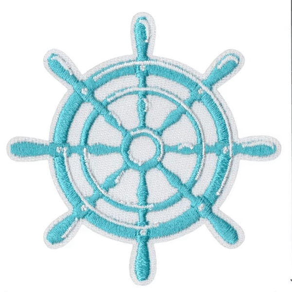 Lyseblått "Skipsratt" - patch i Sail Away serien brodert Patch til klær.