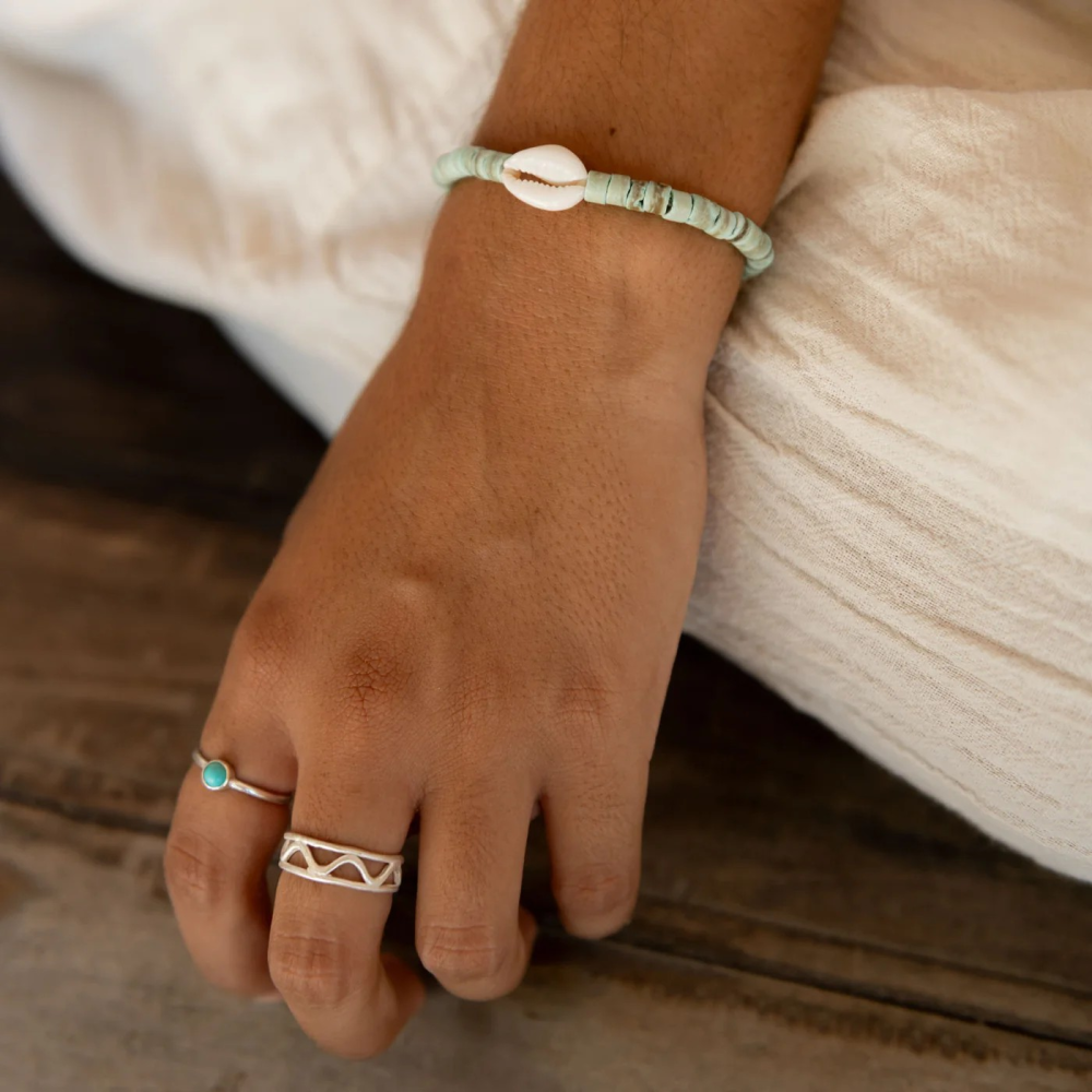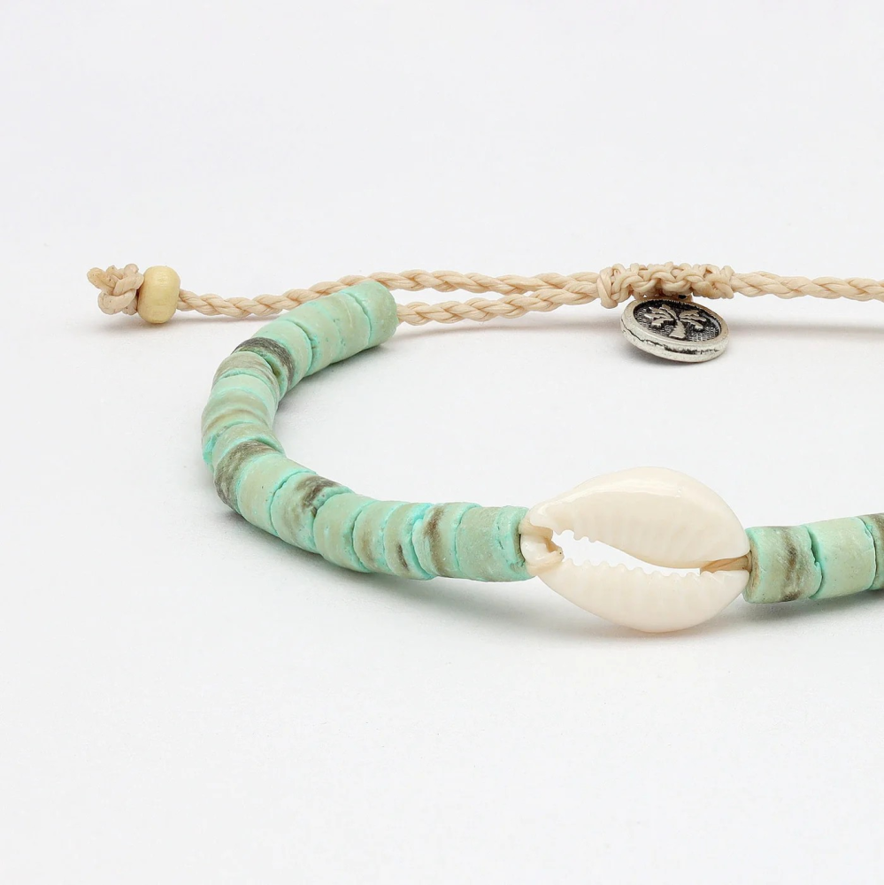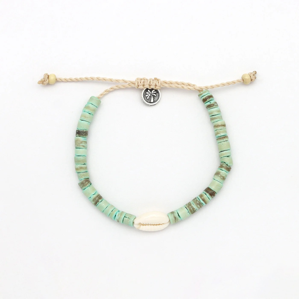 * Pinapple Island: " A classic surf-style bracelet, made from coconut wood and natural cowrie shell! The Nyang Nyang Cowrie Shell Bracelet is the perfect bracelet for those long days by the beach!"