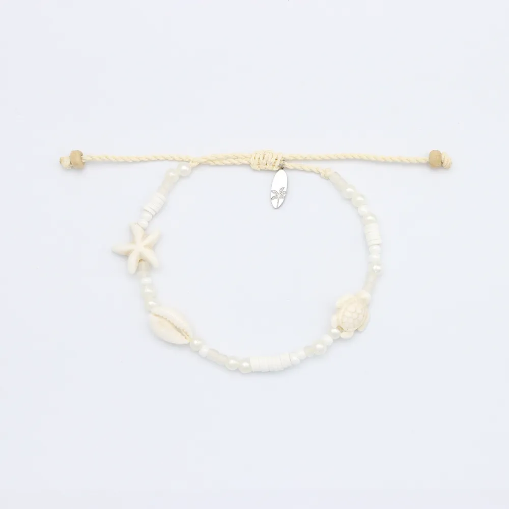 * Pinapple Island: "The Sagara Hati Beaded Charm Bracelet draws its name from the Balinese words “Sagara” meaning “ocean” and “Hati” meaning “heart.” This bracelet captures the deep, soulful connection to the sea and the warmth it brings to our hearts. Adorned with a beautiful mix of charms, including a turtle bead, a starfish bead, and a cowrie shell, this bracelet is a perfect reminder of the ocean's calming energy and the treasures found along its shores.