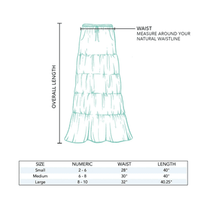 Lotus and Luna: "Indulge in island-inspired vibes with our tiered cotton skirt! Complete with a drawstring waist and convenient interior pockets, this skirt is your passport to easygoing style. Get the beach look and pair it with a tank top, or elevate the charm with a cruisin' crop for a seaside soirée"