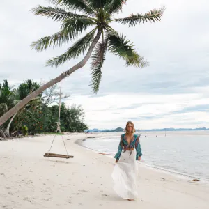 Lotus and Luna: "Indulge in island-inspired vibes with our tiered cotton skirt! Complete with a drawstring waist and convenient interior pockets, this skirt is your passport to easygoing style. Get the beach look and pair it with a tank top, or elevate the charm with a cruisin' crop for a seaside soirée"